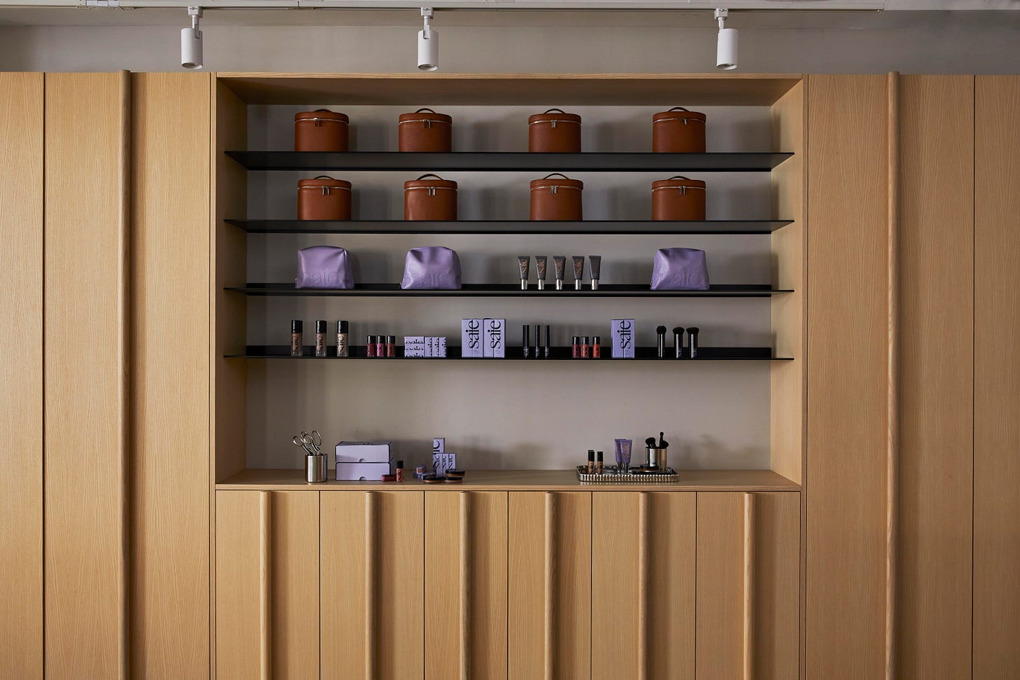 Don’t be scared of color. Shelly did an incredible job of incorporating our signature Saie lilac to add pops of color throughout the office. Everything from the soft lilac lime wash finish on the walls of the entrance way and conference room to the our iconic lilac packaging. You notice the lilac without it being too overwhelming and overdone.